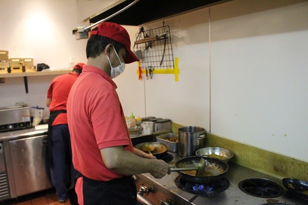 The staff prepare the dough for the naan and allow it to rise overnight.