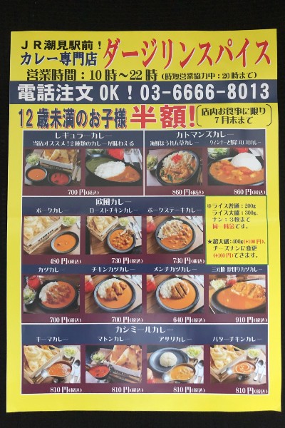 Customers can choose from four levels of heat: mild, medium, hot and ultra-hot. Everything on the menu can be taken out and all the popular delivery services are available too. If you’re in the Shiomi area for work or play and are feeling esurient, why not drop in to Darjeeling Spice Shiomi? It really is magic!