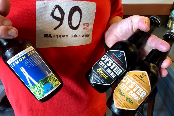Hiroshima Teppan also sells beer brewed at the Session’s Brewery in the Eba area of the city. There’s stout, pale ale, and a selection of citrus beers for summer. The Oyster City beers use Hiroshima’s famed oyster shells as a fining agent, producing smooth, well-rounded beers.
