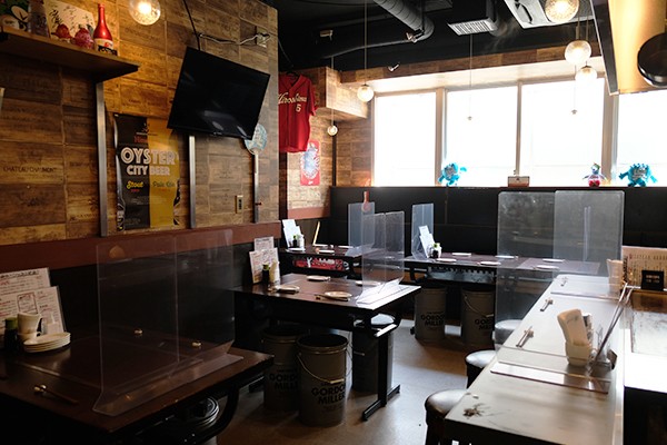 The restaurant itself is high-ceilinged, comfortable, and extremely well-ventilated, as you would expect. The walls are adorned with posters of Hiroshima and uniforms of Hiroshima Carp, the town’s wildly popular professional baseball team.