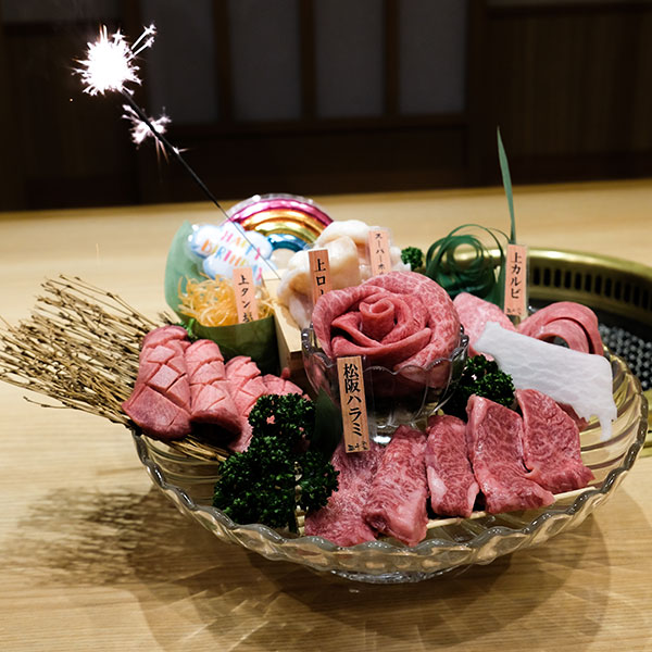 上質な肉がテーブルに並ぶだけでもテンションが上がりますが、事前の予約で、予算に合わせたこんな華やかな盛り合わせも作ってくれるんです。