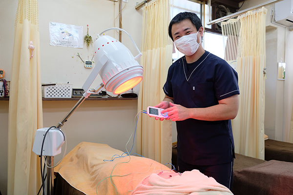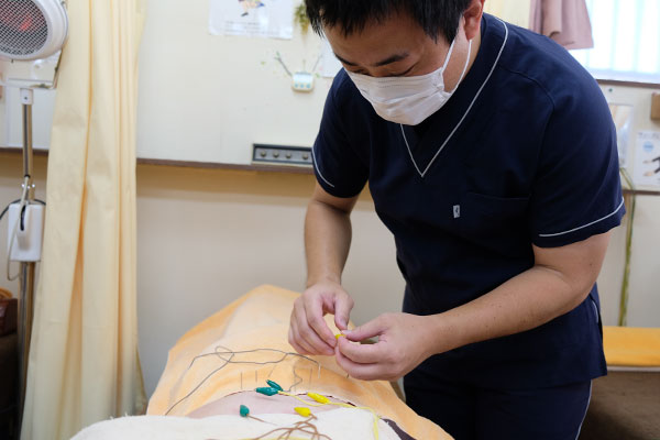 得意とするのは、電気鍼「パルス鍼」を使用して行う施術で、その人の目的や症状に合わせて電気の種類を見極め使いこなすこと。