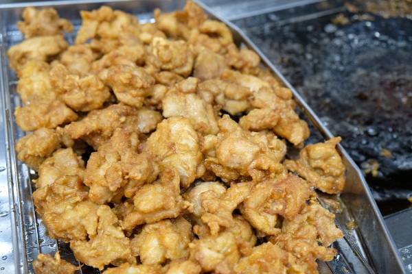 Prices are very reasonable: five pieces of this tasty-looking karaage fried chicken are just 270 yen, smaller versions of the minced meat cutlets are 180 yen, potato croquettes are 100 yen, and the ever-popular crab in cream sauce croquettes are 120 yen each. Horse mackerel, squid, salmon and shrimp are also available at very reasonable prices.