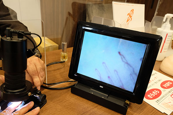 この日は、毛細血管の状態を知り健康状態をチェックするという「血流観察イベント」の開催日。