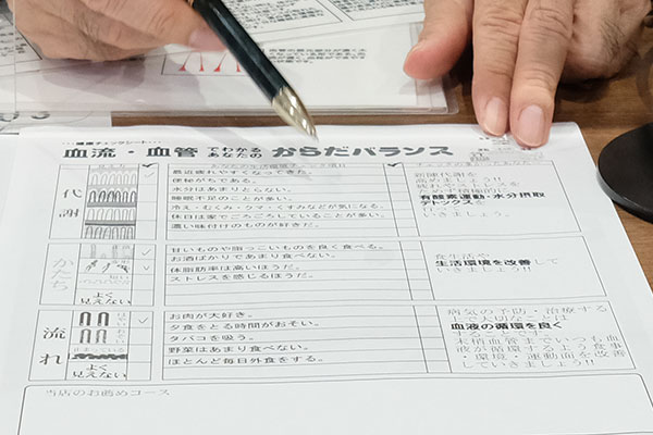 私の診断結果は、代謝・かたち・流れとも、かたちにやや変形があったもののほぼ正常でしたが、適切なアドバイスもあり、改めて健康について考えるきっかけになりました。