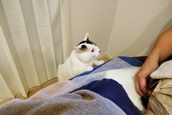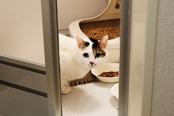 施術中はバックヤードでおとなしく、のんびりとくつろいでいます。