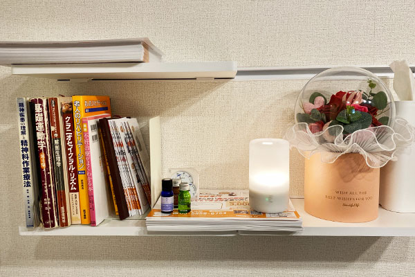 「自立神経を整えるにはリラックスすることが何より」とアロマテラピーセラピストの資格を取得し、お客様の症状に合わせたアロマオイルをたくこともあるという齋藤さん。