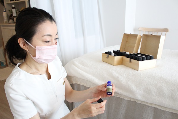 こちらのトリートメントの特徴は、直井さんが一人ひとりの好みやお悩みに合わせた精油を3~5種類セレクトし、ブレンドしてくれる点。