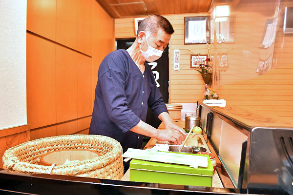 △大将・三ツ木新吉さんが握る江戸前すしを求め、著名人も足繁く通う有名店です