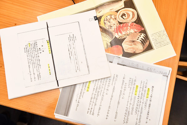 △「正調 江戸前にぎり寿司」を再現するために大将が読み込んだ資料の一部を見せていただきました