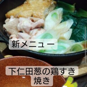 下仁田葱の鶏すき焼きです!もちろん葱焼きもございます!