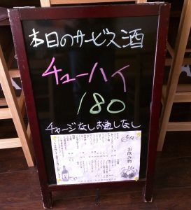 本日のサービス酒は「チューハイ」180円! サービス品は「ちあいのネギマ汁」150円!