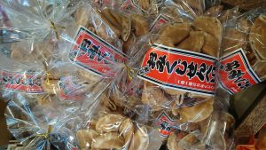 瓦せんべいの中におみくじの入ったおみくじせんべい。