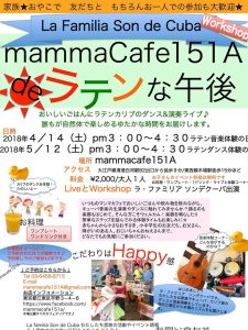 いよいよ来週4月14日(土)に開催される「ラテンな午後」ラテン音楽、ダンスと料理でラテンなムードに浸ってください。