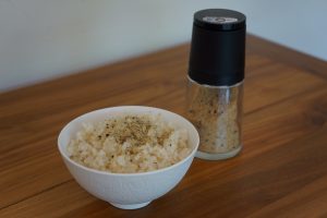 有機米ぬかのふりかけをかけて栄養満点ご飯でお召し上がりください。