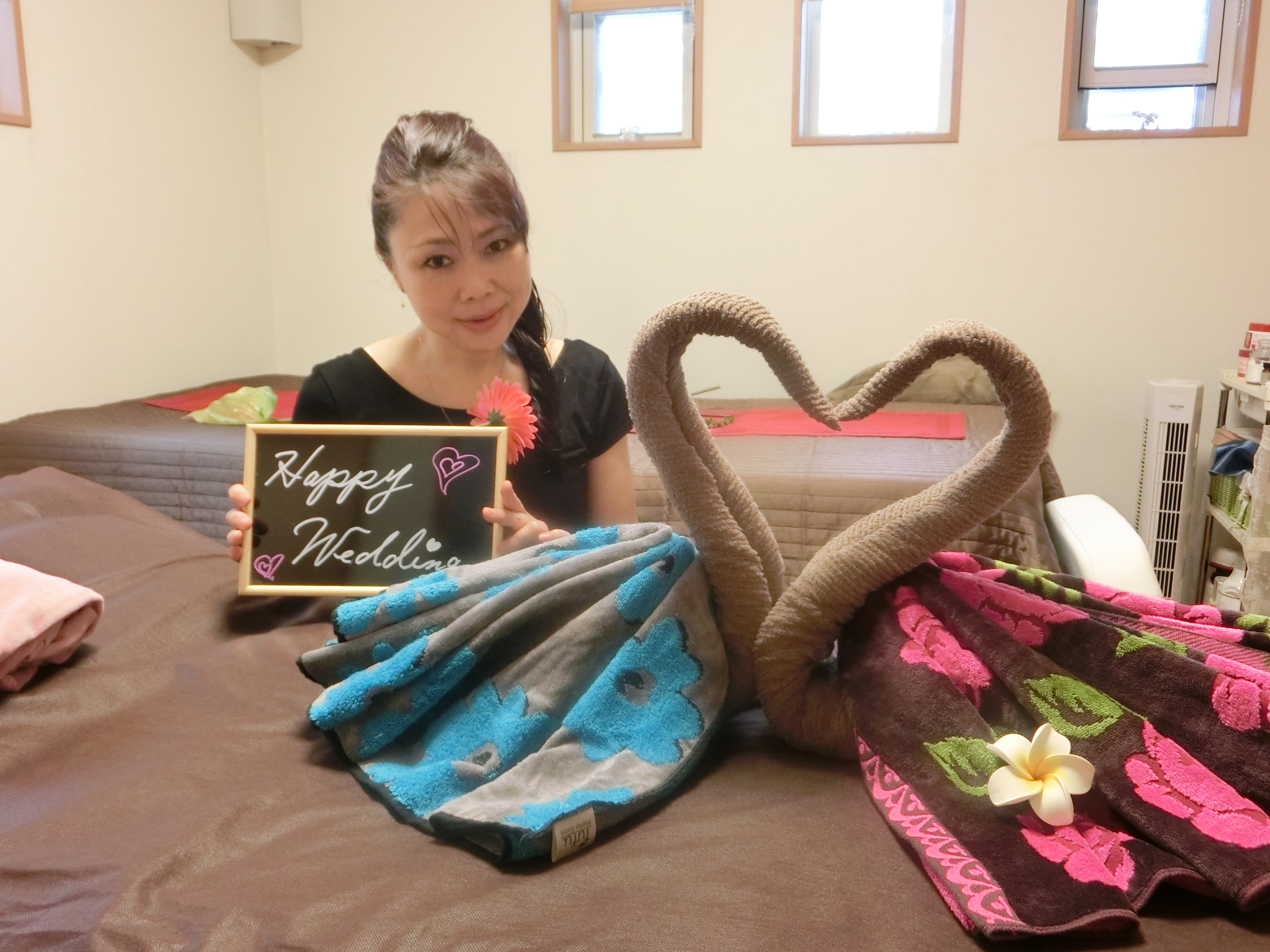 タオルのスワンをハート型にして
