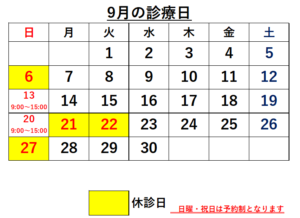9月21日・22日は休診日とさせて頂きます。