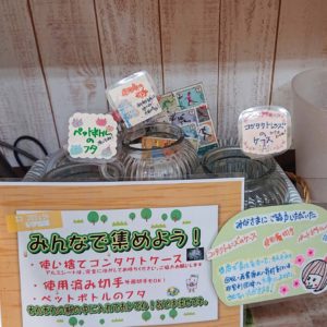 紀伊国屋亀戸店では、コンタクトレンズ空ケースをリサイクルするため回収しています。空ケースの素材はプロポリピレンを使っているようで、リサイクルしやすい素材とのことです。