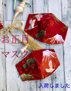 縁起の良い赤富士と飛び立つ鶴のマスクが届きました。