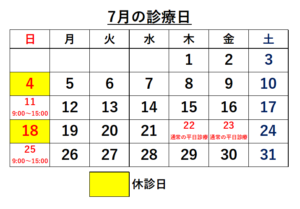 7月4日(日)は休診日とさせて頂きます。