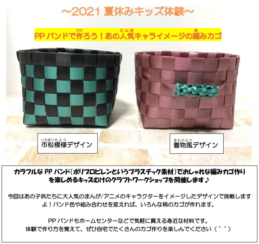 夏休みキッズ体験【PPバンドでカゴ編み挑戦】