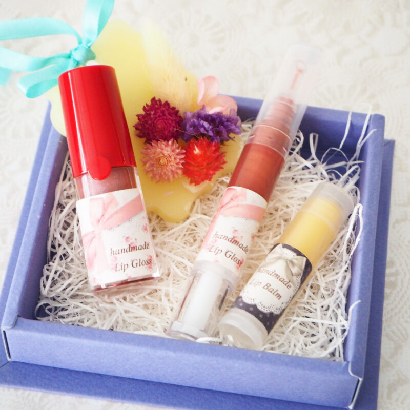 今回の体験では、「UVケア効果のあるリップバーム2本」と「好みの色で作れるリップグロス1本」を実際にお作りいただけます。