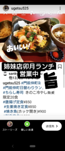 姉妹店卯月ランチ営業中!ちらし寿司です。きのこ冷やし蕎麦も付いてまーす!