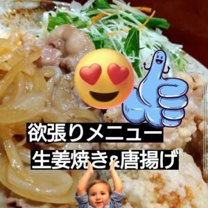 定番の生姜焼きと唐揚げを合わせました。好きなメニューを組み合わせてください。お値段据え置き850円
