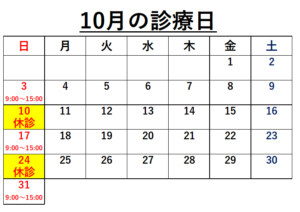 9日(土)は通常通り、お昼休憩なしで 8:30~17:00までの診療です。