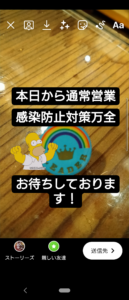 本日から通常営業!感染防止対策万全です。安心して来店してください!