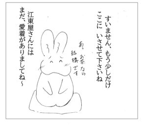 江東屋の屋号の成り立ちは前回まででお話しましたが さて、江東屋の今後についてですね 親父殿が体調を崩して お休みしているときも、 親父殿の人形焼を買いに来るお客さんが 後を絶たなかった