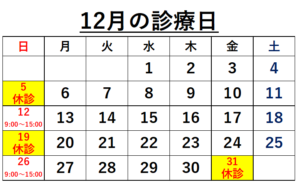 12月19日(日)は休診日とさせて頂きます。