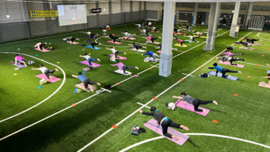 フットサル場でヨガやピラティスを体験できるプログラムです。
