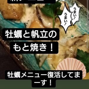 牡蠣のメニュー復活しました。
