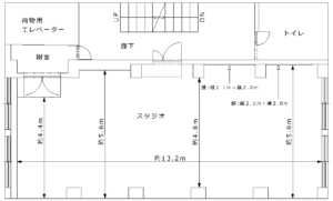 寸法は約13.2m×約4.8mと横に広がった空間です。