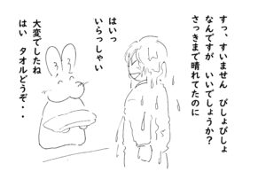 さて、雨の日の接骨院のおはなしです 常連の皆さま!! 雨の降った日は無理しないでいいからね 私だって雨が降れば外になど出たくないモン