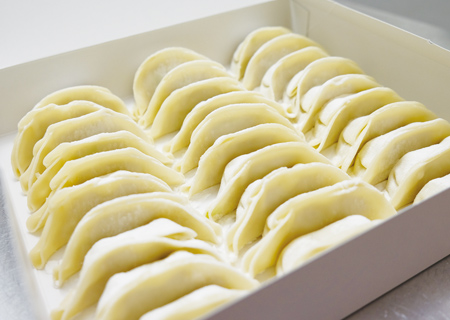 忙しい人の心強い味方! 持ち帰りぎょうざの専門店。ぎょうざ好きの夫婦が作るのは、キャベツの刻み方や国産素材にこだわった「一福」「しその葉」「こく旨」「肉極み」の4種類。あんと皮のバランスも絶妙! ぎょうざファンの期待を裏切らないおいしさを自宅で焼いて実感すべし!