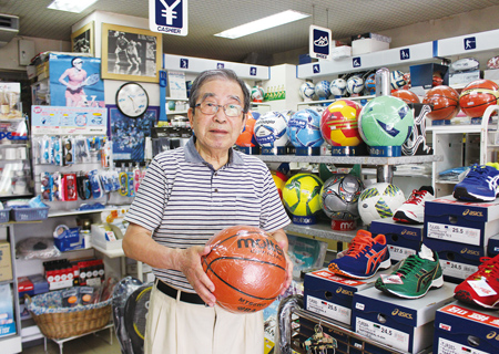 1964年の東京オリンピックでバスケットボール国際審判マネージャーを務めたという店主の宮川敦信さん。「スポーツのことなら何でもおまかせ」と技術のアドバイスまで。ガットの張り替えからユニフォームの注文相談も気軽に応じてくれる。地元スポーツ少年少女にとって頼れる存在。!