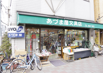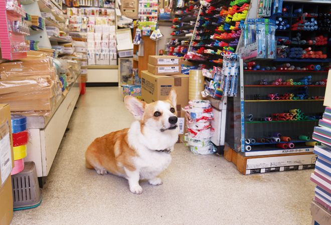 事務用品や学用品が充実する「あづま屋文具店」のサキちゃん(♀4歳)。机の下、お気に入りのベッドでまったりする姿が愛らしい。
