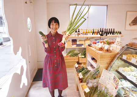 店主の今野徹さんがつながりをもった農家の野菜の味に感動し、「多くの人に食べてほしい」と始めたそう。食べ方や野菜が育った土壌の特徴まで教えてくれる。こだわりチーズと新鮮お野菜、果物や平飼いの有精卵まで! あとワインも買っちゃおう。