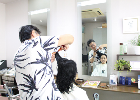 美容師歴63年、国家資格の試験官や美容学校での指導経験をもつ店主・目黒光子さん。その確かな腕に惚れ込み、数十年通う常連さんも多いそう。「腹筋とラジオ体操が日課なの」という、77歳とは思えないパワーと美貌で今日も南砂マダムのキレイ&ハッピーをかなえます。