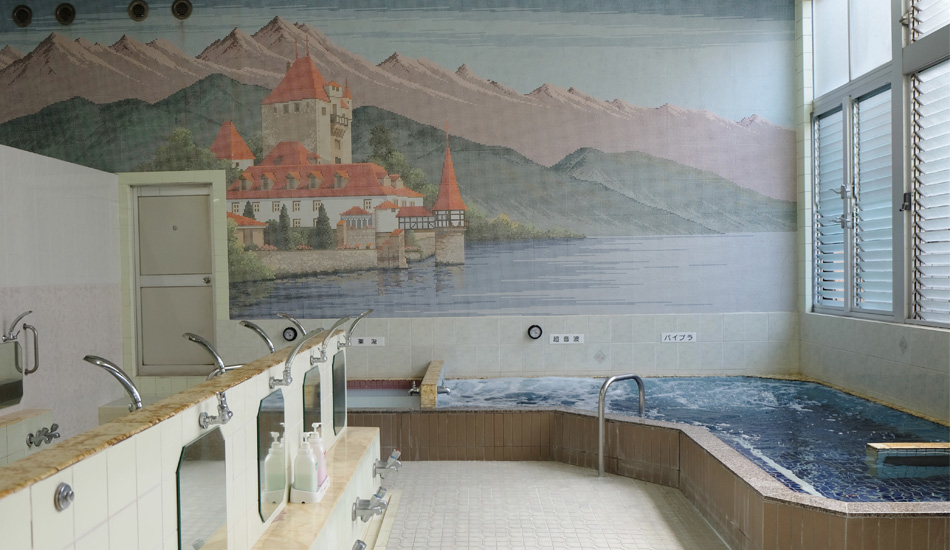 The scenery in Takanoyu’s colored tiled wall picture reminds us of Europe.