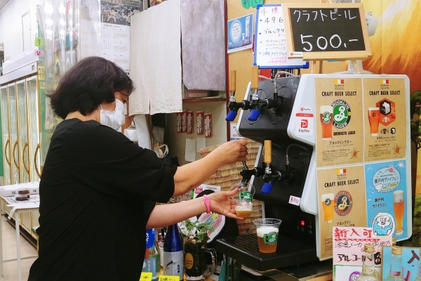 Japanese craft beer has seen a boom in recent years with more and more breweries popping up across the country. Customers can get a cup to enjoy right away or a 3L growler to take with them. Bottles and cans are also available for purchase.