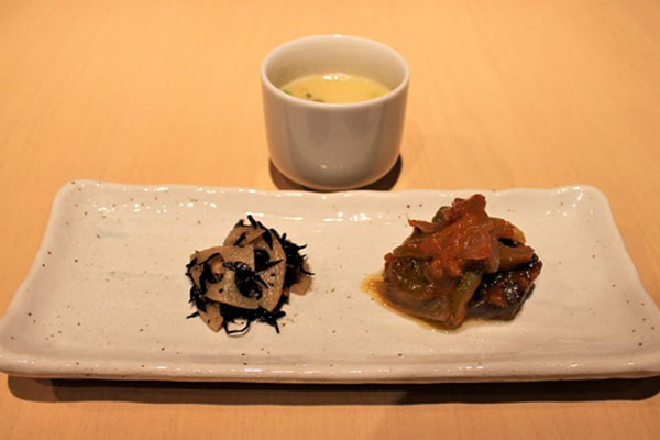 Mr. Hirabayashi’s training as a French chef shows in the menu with such dishes as liver paste and gizzard confit. For those who crave vegetables there’s also yam kimchi and a variety of Korean-style namul dishes.