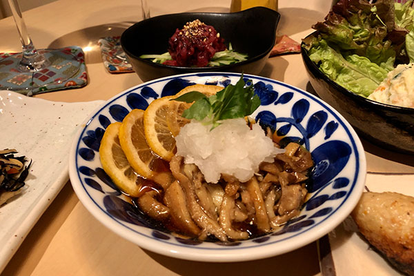 The yakitori was exceptionally good: each skewer was individually seasoned and cooked to perfection, crisp on the outside but still juicy in the centre. As Mr. Hirabayashi had promised, the skewers were far larger than usual, making the set of six a highly satisfying selection. Other dishes were equally as tasty and carefully prepared: the potato salad (550 yen) was rich and creamy with butter while the pickled apricot and jellyfish (ume kurage 660 yen) was a sharp, crunchy treat.