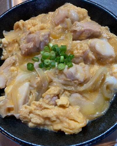 This chicken, egg and onion (oyakodon) on rice is also a lunchtime hit at 1,000 yen.