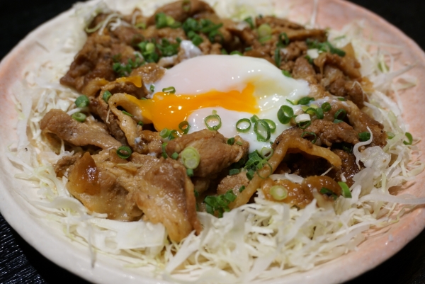 One such item, and one of the restaurant’s most popular dishes, is Towada Bara Yaki. Originating from Aomori Prefecture in northern Japan, this dish comprises boneless pork rib and finely-chopped onions on a bed of shredded cabbage topped off with an “ontama” (soft-boiled egg). All cooked in a sweet sauce, made according to a ubiquitous “secret recipe”, on a low heat for one day, the result is a sweet-tasting and tender dish for 580 yen.