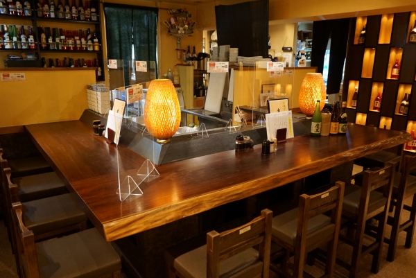 In the evening, customers can relax and enjoy themselves at the attractive counter with its subdued lighting or sit at one of the partitioned wooden tables. This all makes for an ideal place where couples can come and dine.
