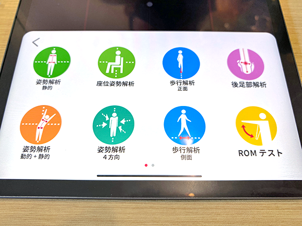 The software analyses such areas as walking posture, shoulder balance, hip balance, pelvic tilt, spinal curvature, muscle condition, sitting posture, and many more.