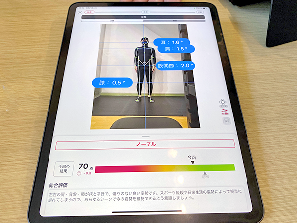 The third plan is for those seeking to improve their posture and begins at 2,000 yen. Mr. Kawakami photographs and films each client, then uses cutting edge, professional level AI software developed at Tsukuba University that instantly produces incredibly detailed analysis of up to 270 different areas.